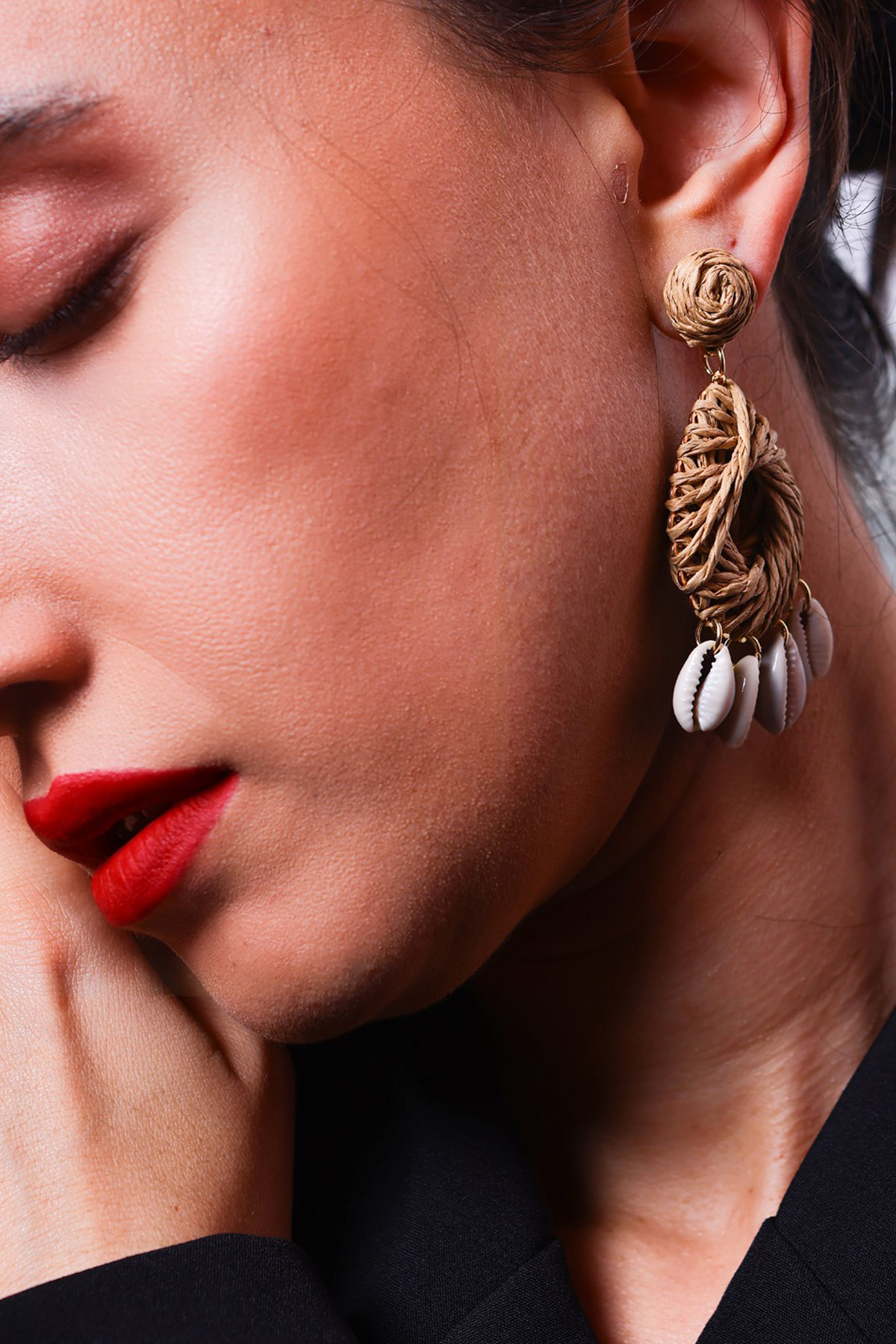 Hasır Dokulu Deniz Kabuğu Detaylı Uzun Kadın Küpe