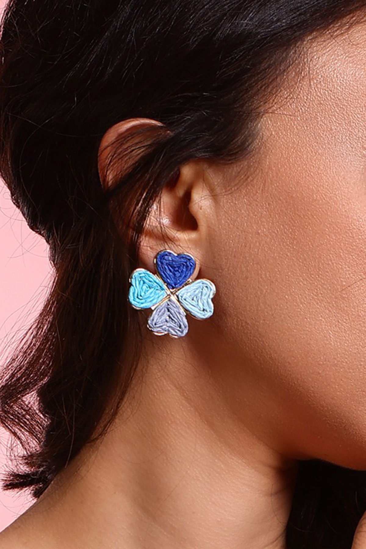 Mavi Kalp Detaylı Çoklu Kalp Tasarım Küpe