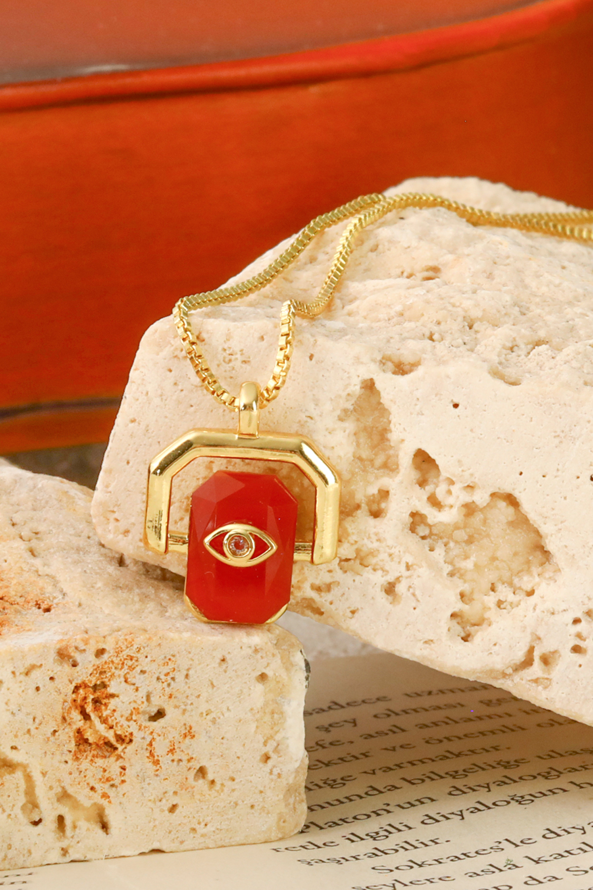Tigger Eye Kırmızı Taşlı Kolye, güçlü sembollerle tasarlanmış zarif bir aksesuardır. Nazar ve negatif enerjilere karşı koruyucu anlam taşıyan göz
