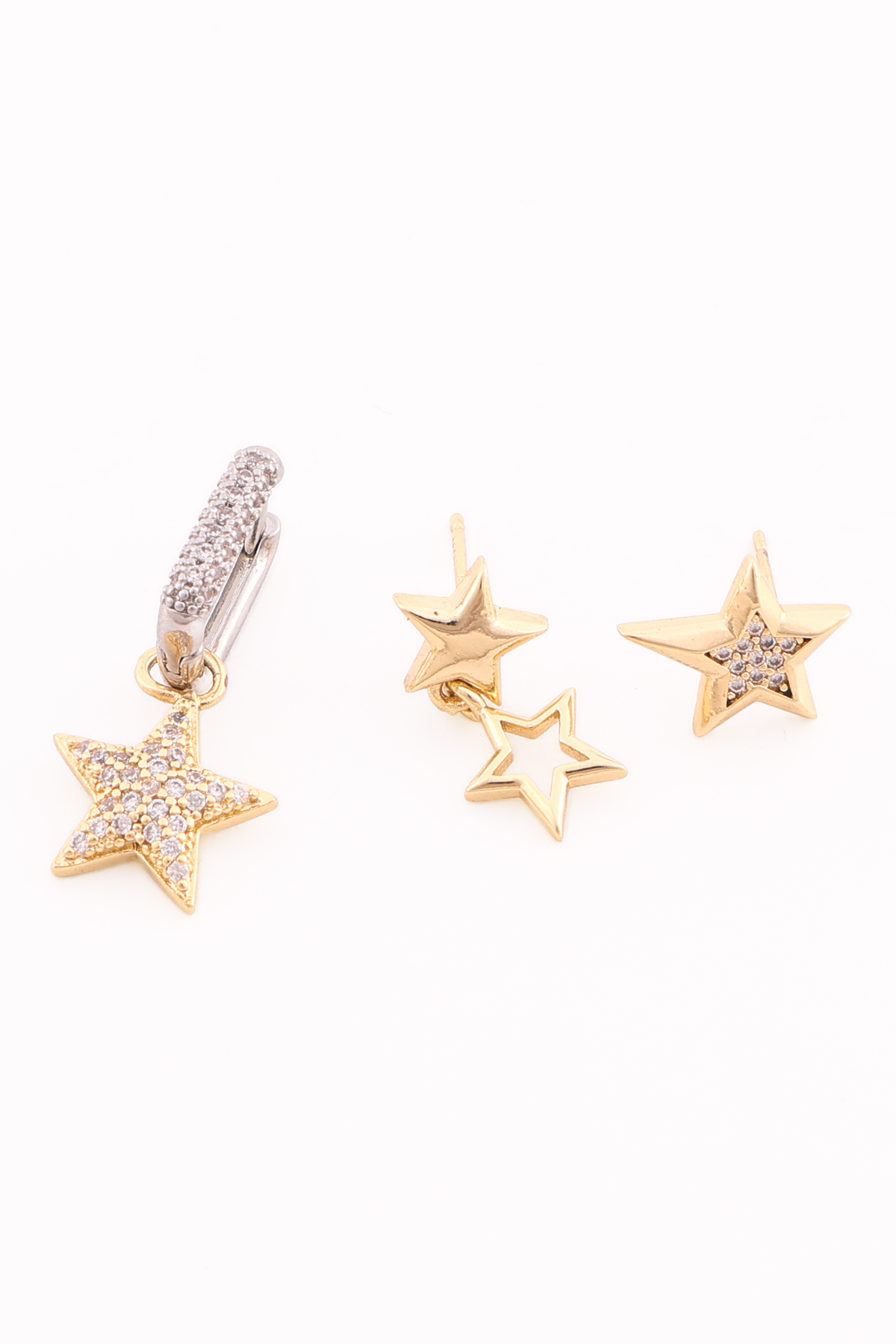 Üçlü Yıldız Küpe, modern ve minimal tasarımıyla stilinizi tamamlayacak zamansız bir aksesuardır. Paslanmaz çelikten üretilen bu küpe, kararma yapmaz, uzun